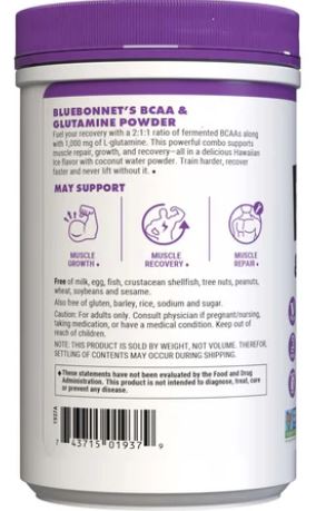 Bluebonnet Kosher BCAA & Glutamine Powder - Hawaiian Ice Flavor Description: