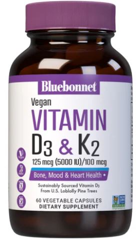 Bluebonnet Vegan Vitamin D3 125 mcg (5000 IU) & K2 100 mcg 60 Capsules