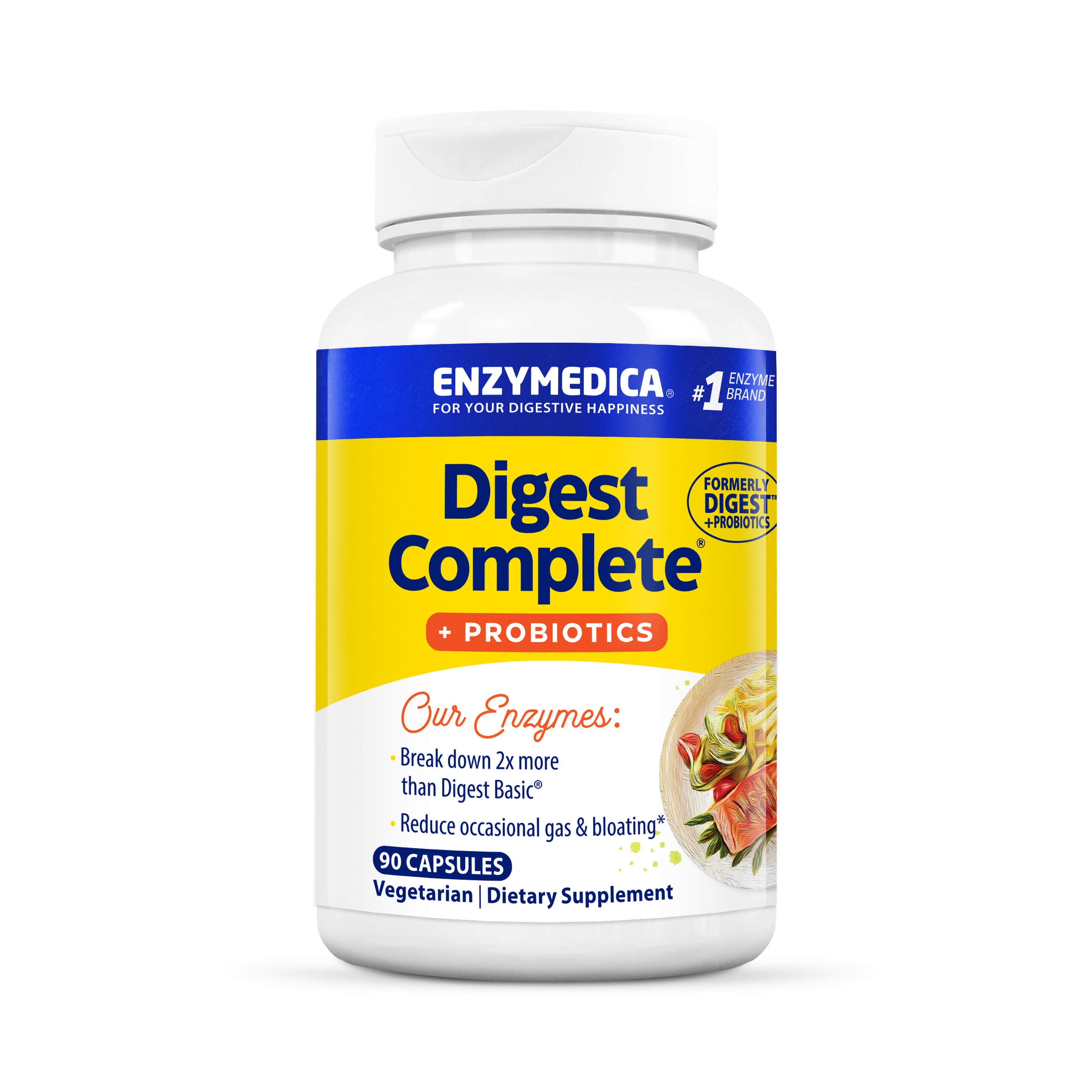 Digest + Probiotics Complete Enzymes With Probiotics Vegetarian Suitable Not Certified Kosher  90 Capsules