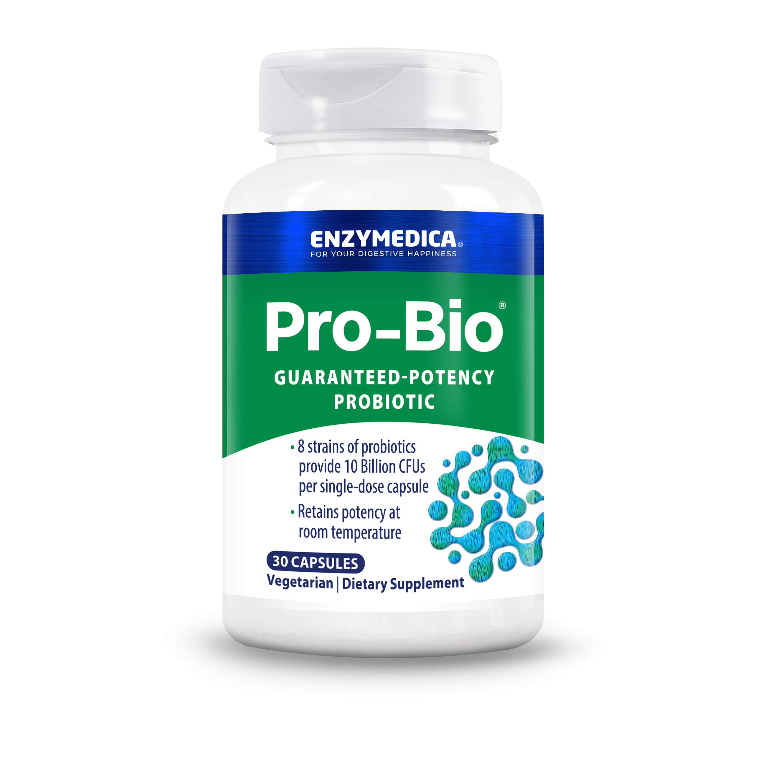Pro-Bio™ capsules are formulated to survive the acidic environment of the stomach, ensuring active probiotic function in the small intestine. The bacterial strains contained in Pro-Bio have been shown to promote a healthy microflora balance in the intestinal tract, aiding digestion and supporting immune function.*