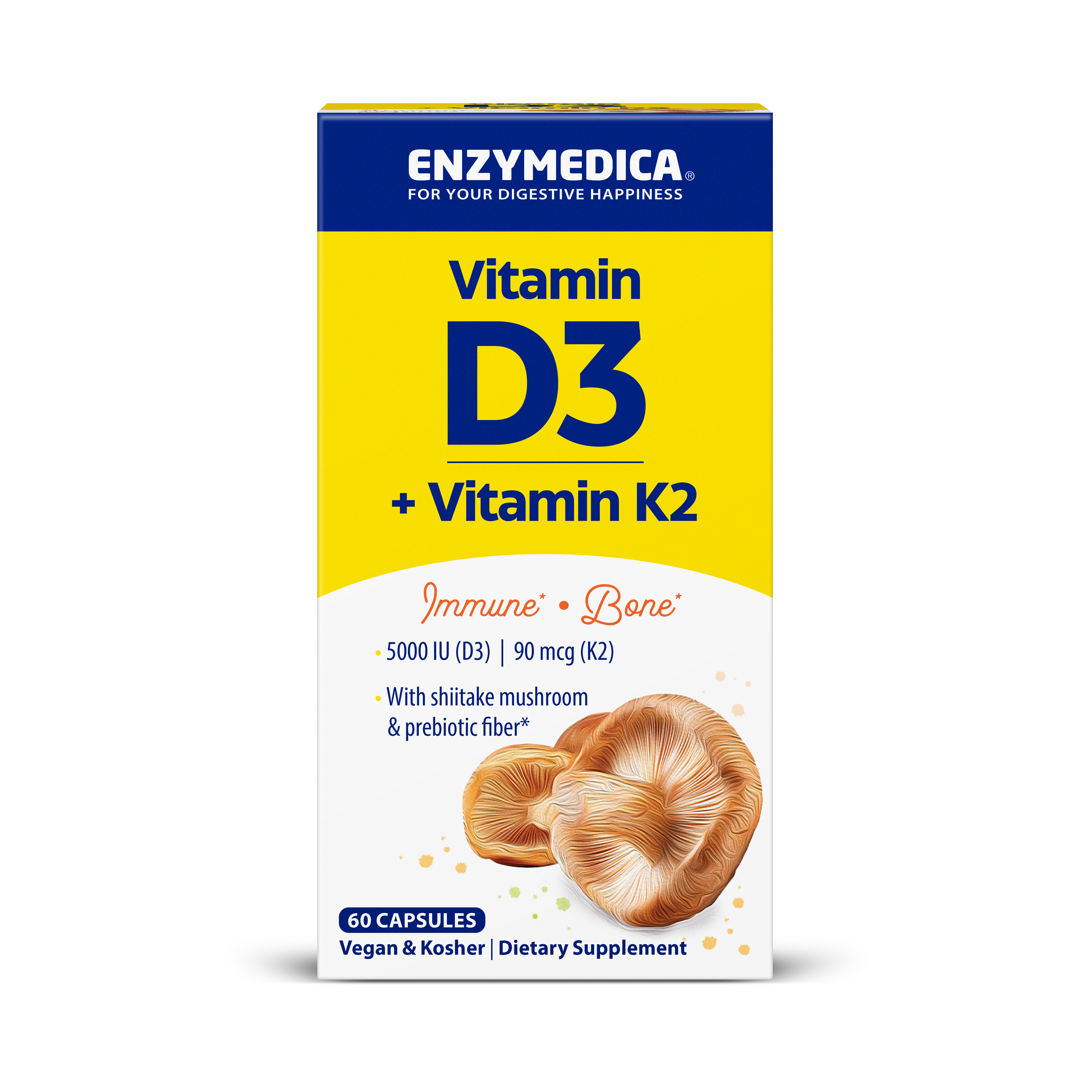 Enzymedica Pro-Bio Guaranteed-Potency Probiotic Vegetarian Suitable Not Certified Kosher 90 Capsules Enzymedica Organic Vitamin D3 + K2 60 Capsules