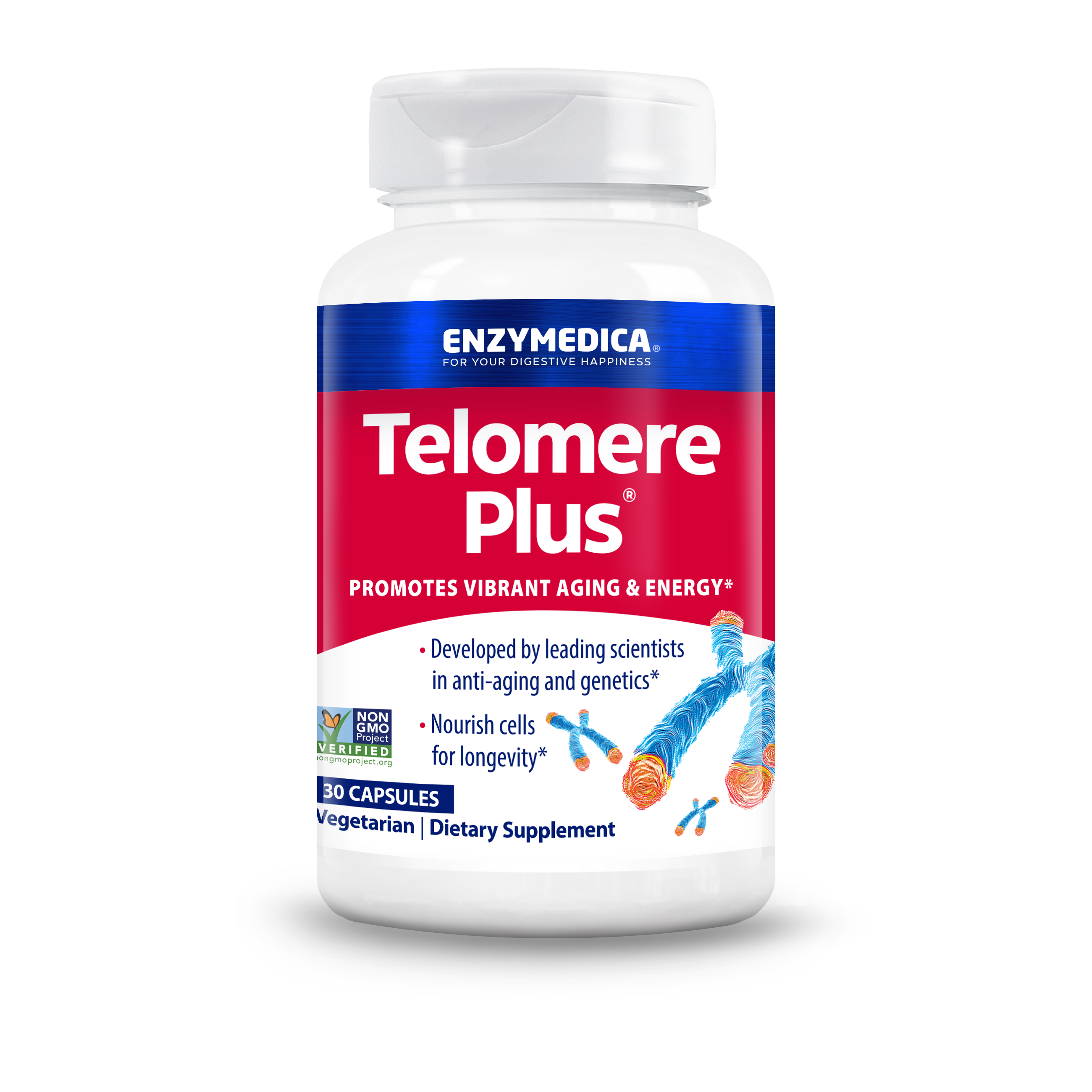 Telomerase is a naturally occurring enzyme that lengthens telomeres and protects them from shortening. Telomere Plus™ has been shown to increase telomerase activity.*