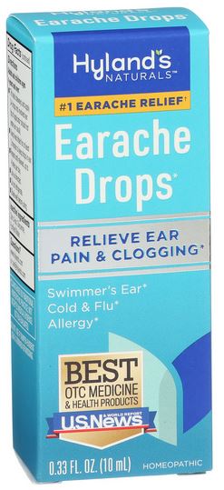 Hyland’s Earache Drops provide temporary homeopathic relief of pain or itching from swimmer’s ear, clogged ears, and ear pain or itching from cold, flu, & allergies, after diagnosis by a physician. All with no alcohol, no numbing, and no sting.