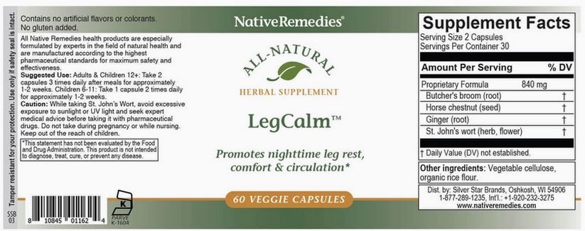 Native Remedies Kosher Legcalm™ for Rested Legs and Limb Comfort at Night 60 Veggie Capsules