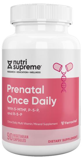 | Vitamin A (as retinyl palmitate and 75% beta-carotene) | 1050 mcg | 81% |  | | Vitamin C (as ascorbic acid) | 100 mg | 83% |  | | Vitamin D (as cholecalciferol) | 50 mcg | 333% |  | | Vitamin E (as d-alpha tocopheryl succinate) | 30 mg | 158% |  | | Thiamin (as thiamine HCI) | 2.25 mg | 161% |  | | Riboflavin (as riboflavin 5-phosphate) | 2.5 mg | 156% |  | | Niacin (as niacinamide) | 20 mg | 111% |  | | Vitamin B-6 (as pyridoxine 5-Phosphate) | 10 mg | 500% |  | | Folate (as L-5-methyltetrahydrofolate calcium) (Biofolate)) | 1000 mcg DFE 167% |  | | Vitamin B-12 (as methylcobalamin) | 200 mcg | 7143% |  | | Biotin | 300 mcg | 857% |  | | Pantothenic acid (as d-calcium pantothenate) | 25 mg | 357% |  | | Iron (as Ferrous bisglycinate chelate) (Ferrochel) | 27 mg | 100% |  | | Iodine (as potassium iodidie) | 150 mcg | 52% |  | | Zinc (ax zinc bisglycinate chelate) (Albion) | 15 mg | 115% |  | | Selenium (as selenium glycinate) (ALbion) | 100 mcg | 143% |  | | Copper (as copper bisglyciante chelate) (ALbion) | 1 mg | 77% |  | | Manganese (manganese bisglyciante chelate) (Albion) | 1 mg | 38% |  | | Chromium (as Chromium nicotinate flycinate chelate) (Albion) | 100 mcg | 222% |  | | Molybdenum (as molybdenum glycinate chelate) (Alnion) | 75 mcg | 150% |