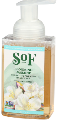 South of France Blooming Jasmine Foaming Hand Wash is enriched with our proprietary blend of moisturizing coconut oil and natural vegetable glycerin for a pampering, cleansing experience. With organic agave nectar to leave your skin more hydrated, our richly foaming organic hand wash is infused with the fresh scent of sweet wild jasmine. South of France Hand Wash is free of parabens, phthalates, and sulfates, and is a cruelty-free product containing no animal by-products. Includes one 8 oz. bottle of gluten-free South of France Blooming Jasmine Foaming Hand Wash.