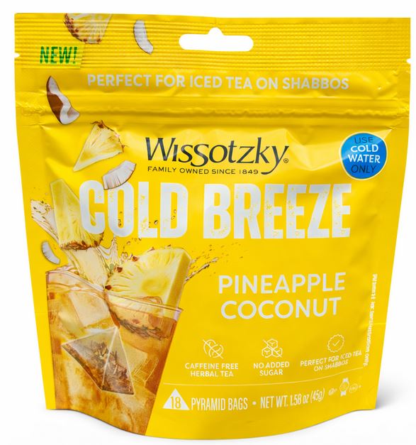 Whether served at a Shabbos meal, family gathering, or weekday refreshment, Wissotzky Cold Breeze Pineapple Coconut offers a delicious way to enjoy iced herbal tea with a tropical twist.