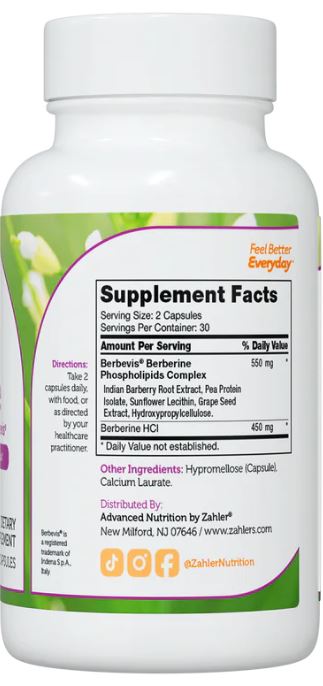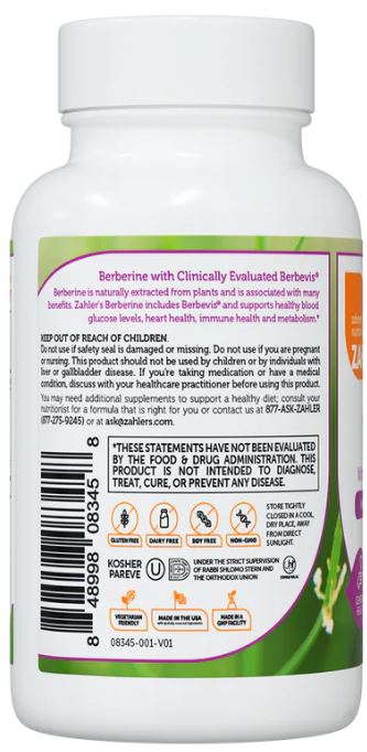Berberine is naturally extracted from plants and is associated with many benefits. Zahler’s Berberine includes Berbevis and supports healthy blood glucose levels, heart health, immune health and metabolism.